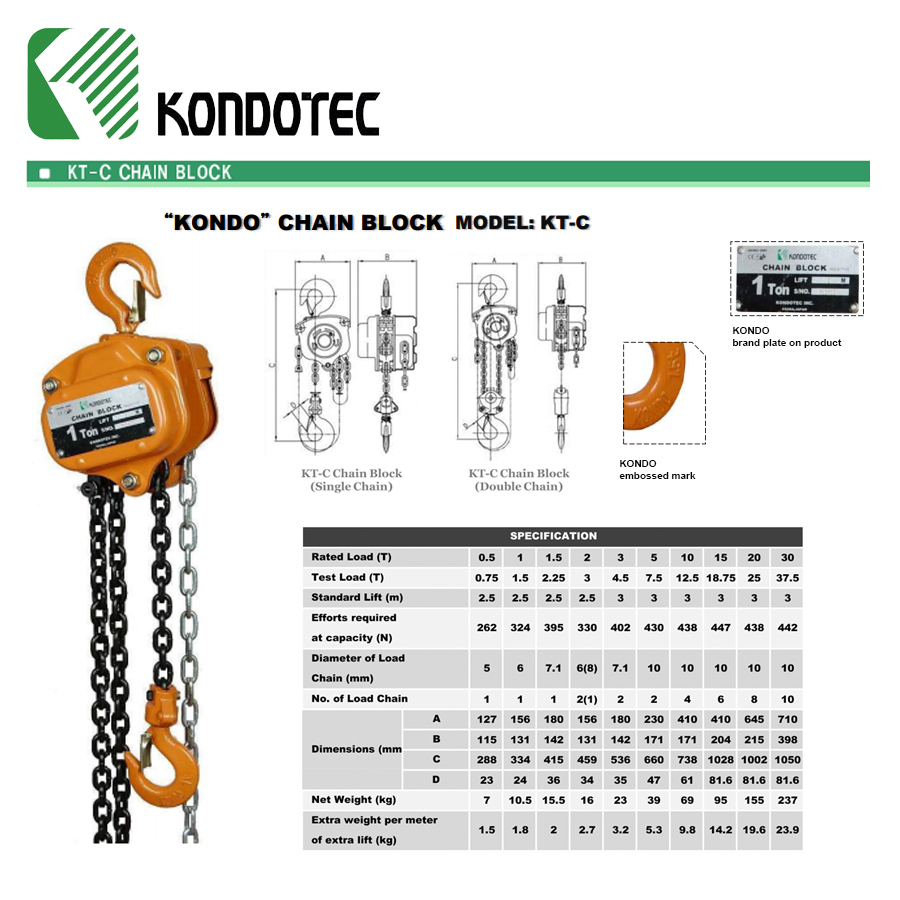 KONDOTEC Chain Block Chain Hoist Takel